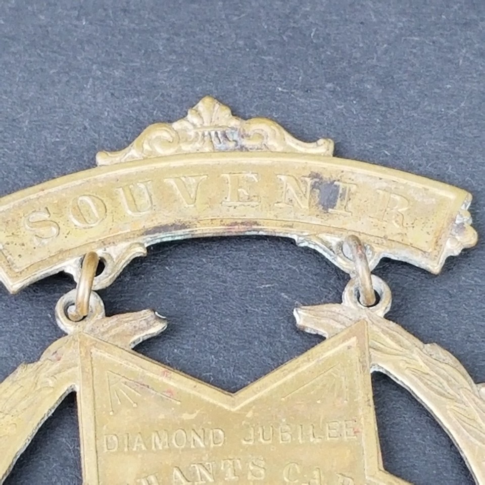 Marion OH Souvenir Pin 1897 Schwaab Badge Diamond Jubilee Merchants Carnival