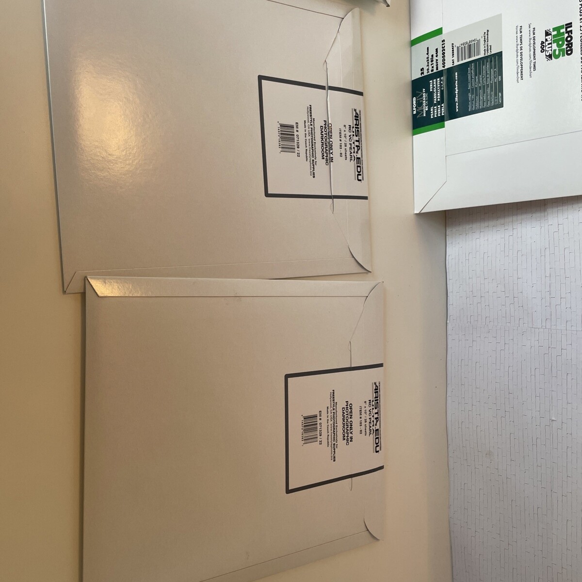This lot consists of 5 miscellaneous photographic paper from brands ILFORD and ARISTA.EDU, including sizes 8x10, 5x7, and MG RC model. The lot includes 2 sealed and 3 opened packages, providing a variety of options for darkroom and developing purposes. This product is ideal for film photography enthusiasts looking to experiment with different brands and models of photographic paper for their darkroom needs.