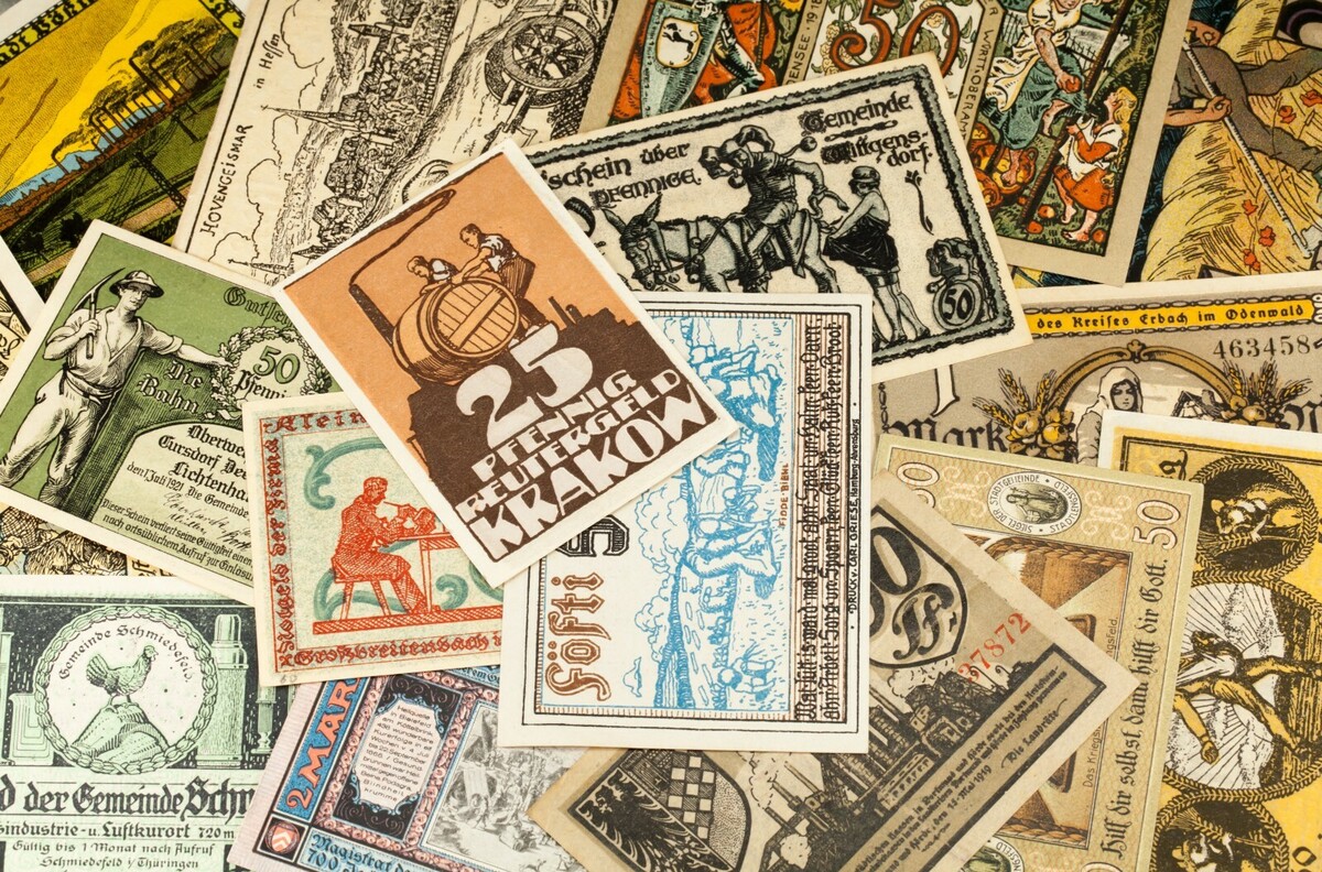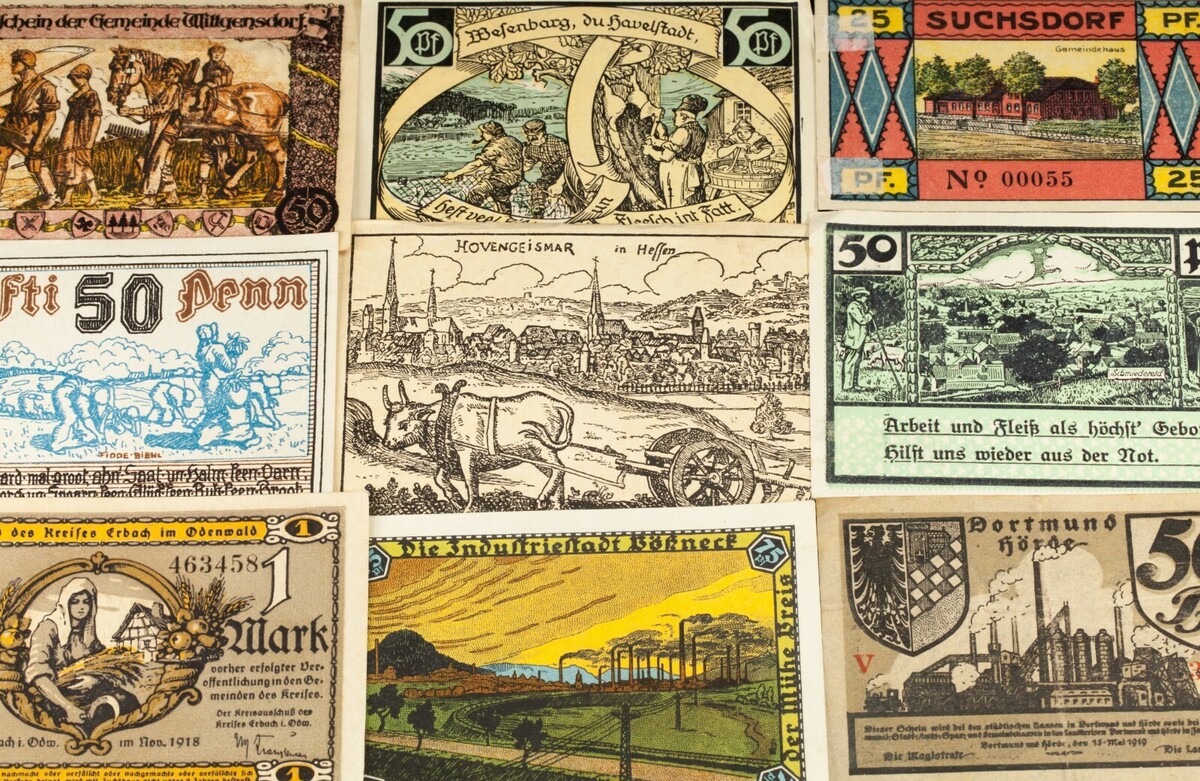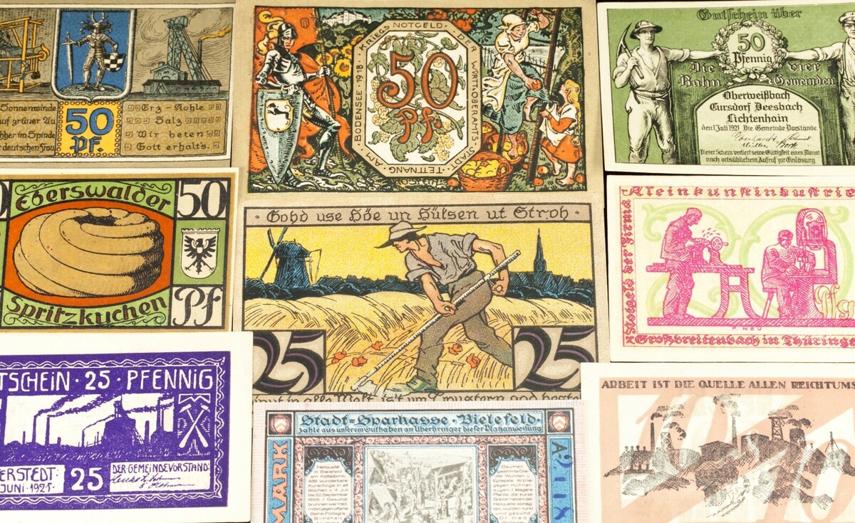 Este lote incluira 25 billetes notgeld individuales de Alemania despues de la Primera Guerra Mundial. Todos estaran en condiciones Extrafinas a Sin circular (XF-UNC). Valores nominales entre 5 pfennig y 5 marcos. Tema laboral y de la industria; agricultores, mineros y pescadores.