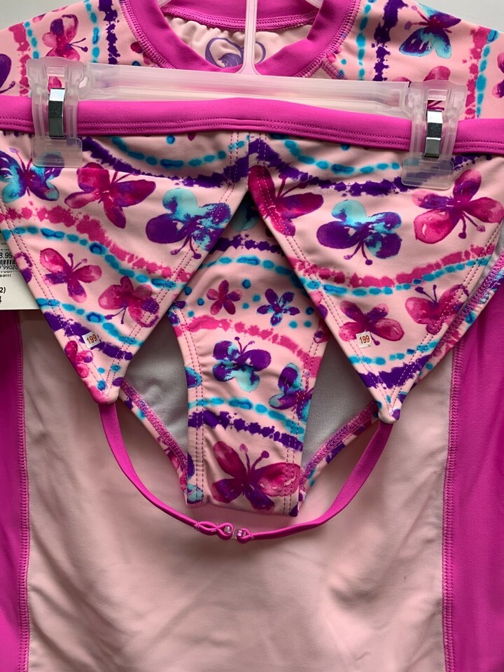 OP GIRLS 3 PC SWIM SUIT SHIRT, TOP, BOTTOMS PINK/BUTTERFLY ASST SIZES BRAND NEW