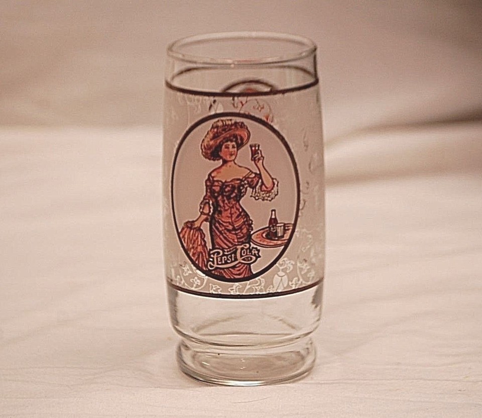 Old Vintage 1970's Victorian Lady Gibson Girl Pepsi Cola Soda Drinking Glass Ad