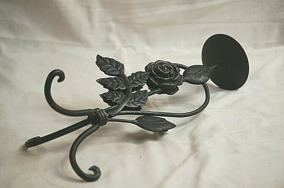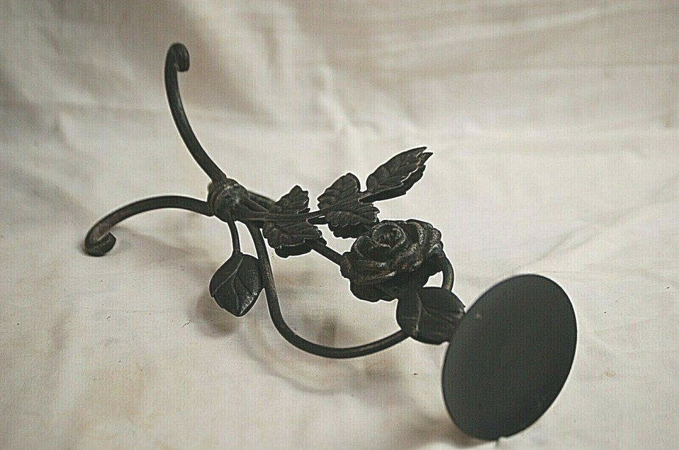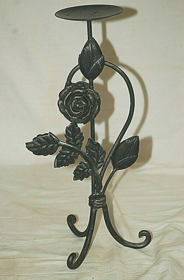Wrought Iron Twisted Metal Rose Candlestick Candle Holder Mantel Centerpiece