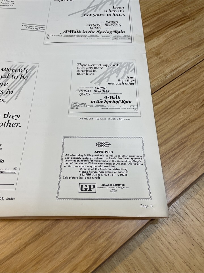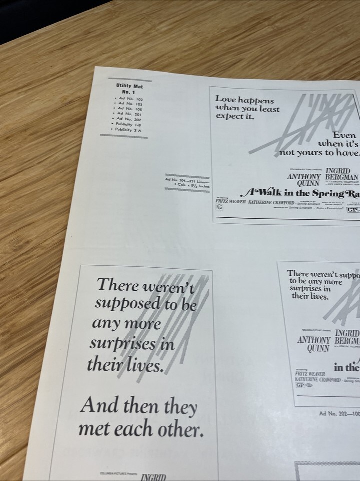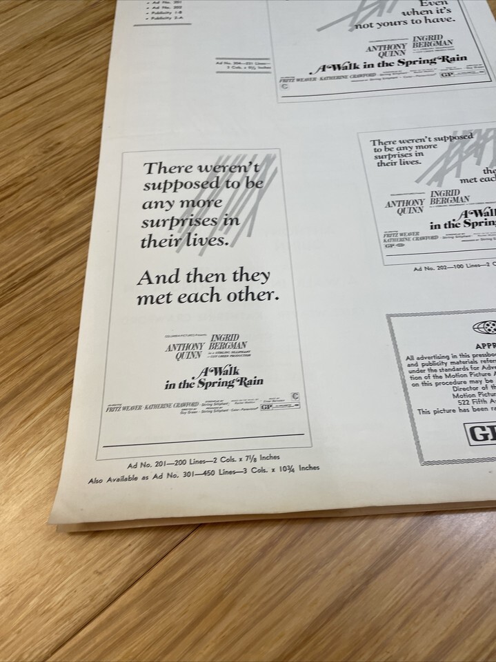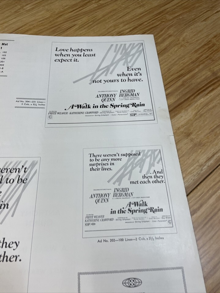 A Walk in the Spring Rain Press Book Kit Movie Poster 1970 Anthony Quinn KG