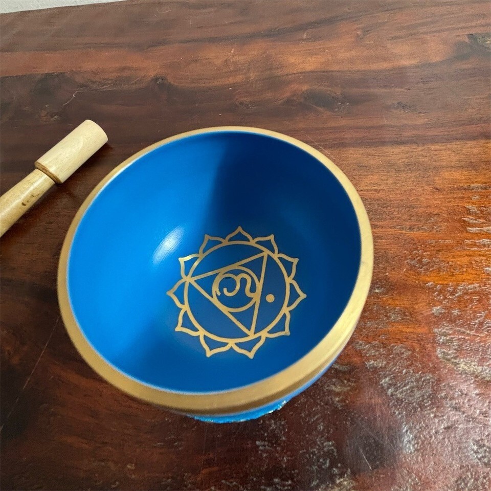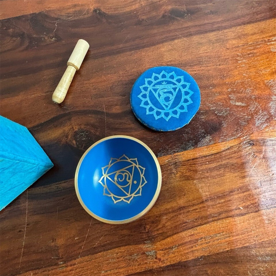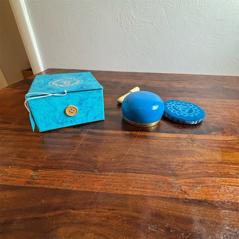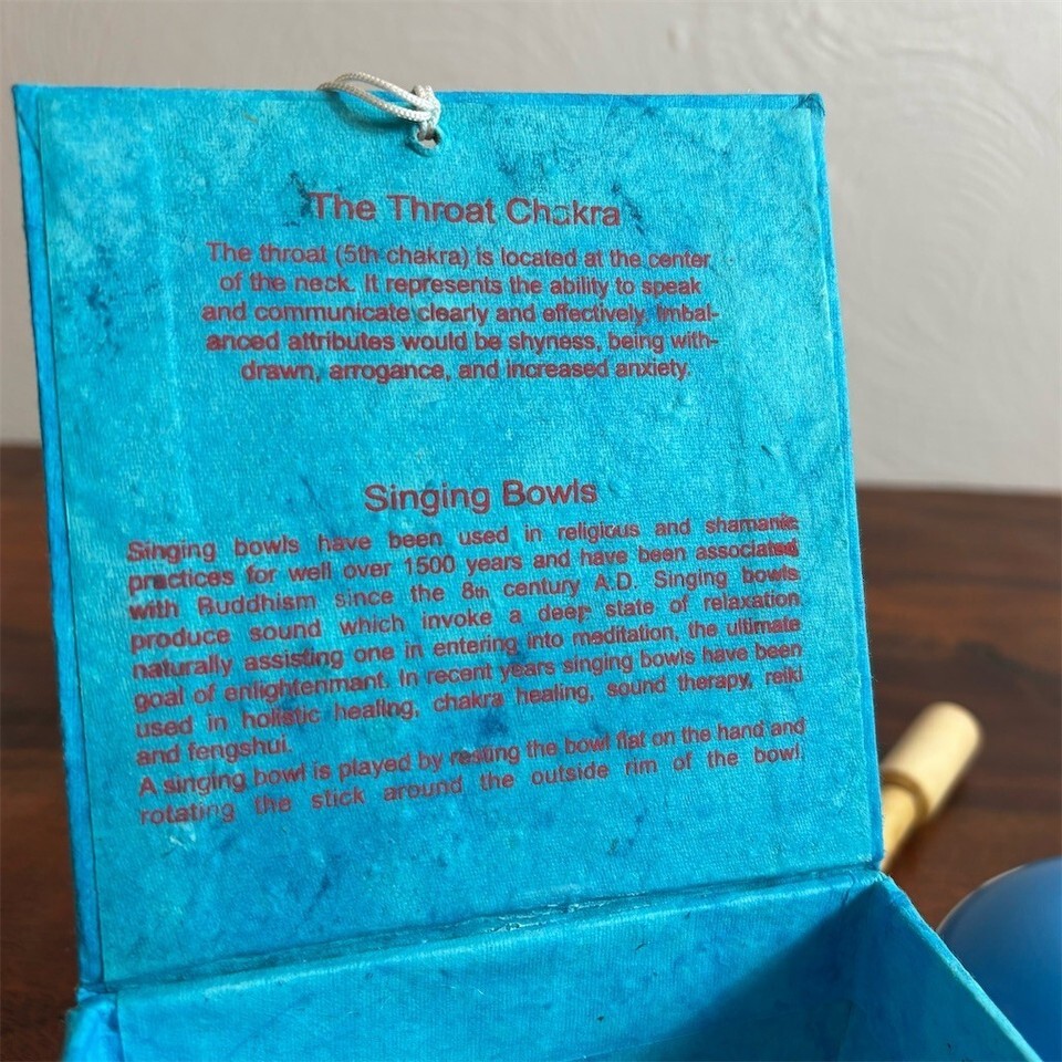 Blue Singing Bowl Set Throat Chakra w/ Mallet Cushion Pad & Storage Box