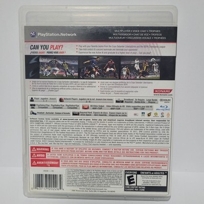The product is a Sony PlayStation 3 game titled Pro Evolution Soccer 2012, part of the Winning Eleven/Pro Evolution Soccer Series. It is an E-Everyone rated sports game with a focus on soccer, featuring the game manual included. Released in 2012 in the United States, this NTSC-U/C (US/CA) region game offers an immersive soccer experience to players of all ages. With its realistic gameplay and detailed graphics, fans of the sport can enjoy competing in various matches and tournaments in this popular soccer simulation game.