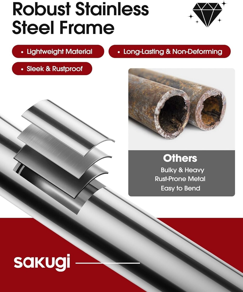 Reliable Support: Crafted from durable stainless steel tubes for a sturdy and dependable garment rack.