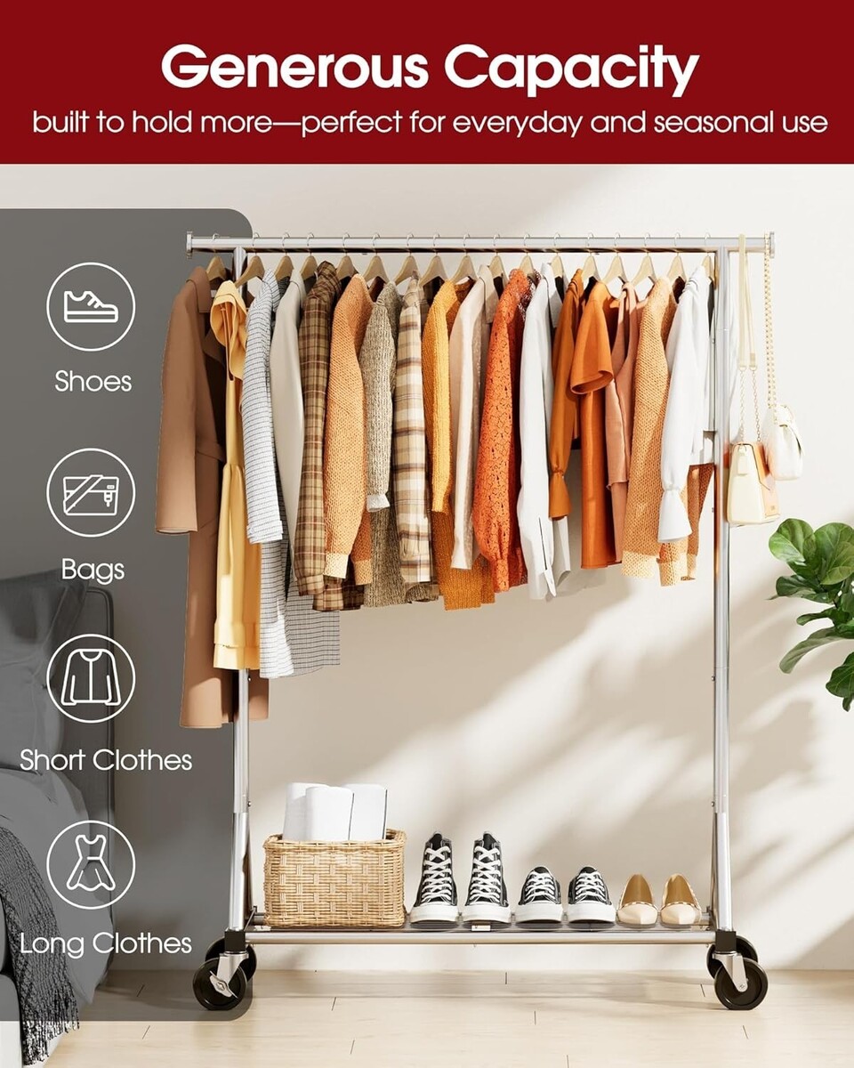 Large Capacity Rolling Clothes Rack - Ideal and similar items