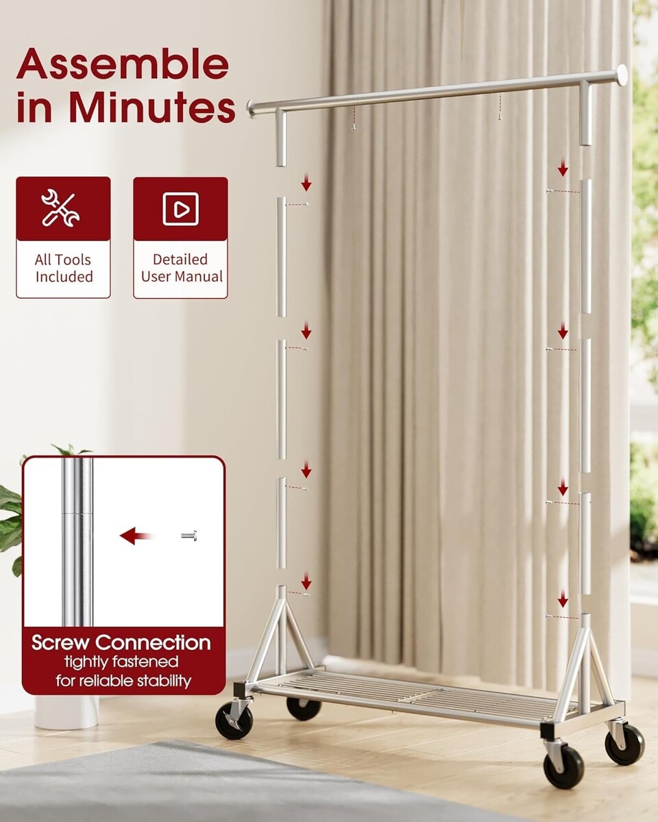 Don?t let chaos reign?order your Large Capacity Rolling Clothes Rack now and embrace an organized lifestyle!
