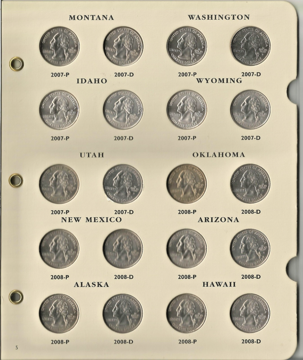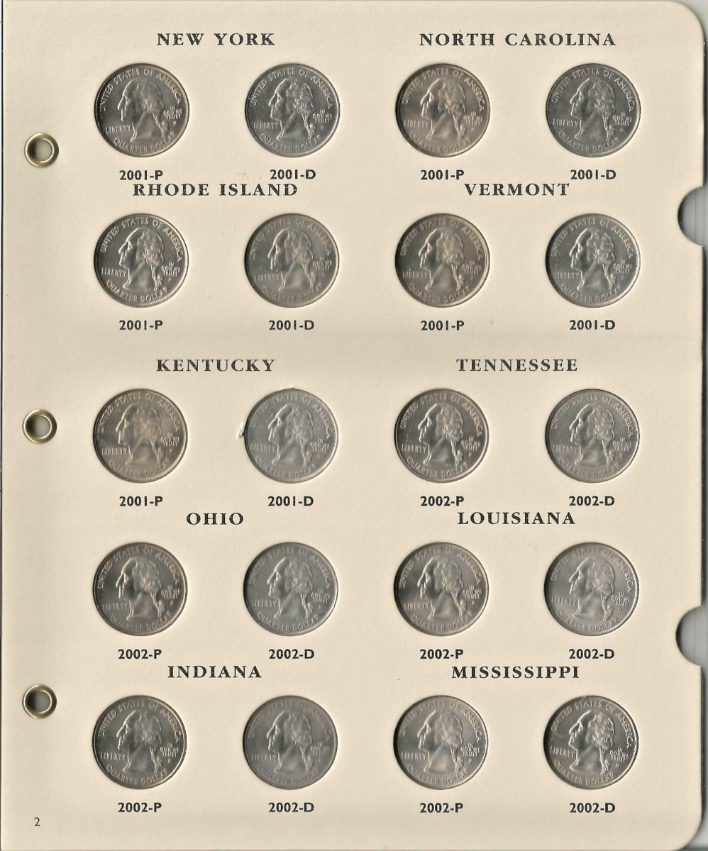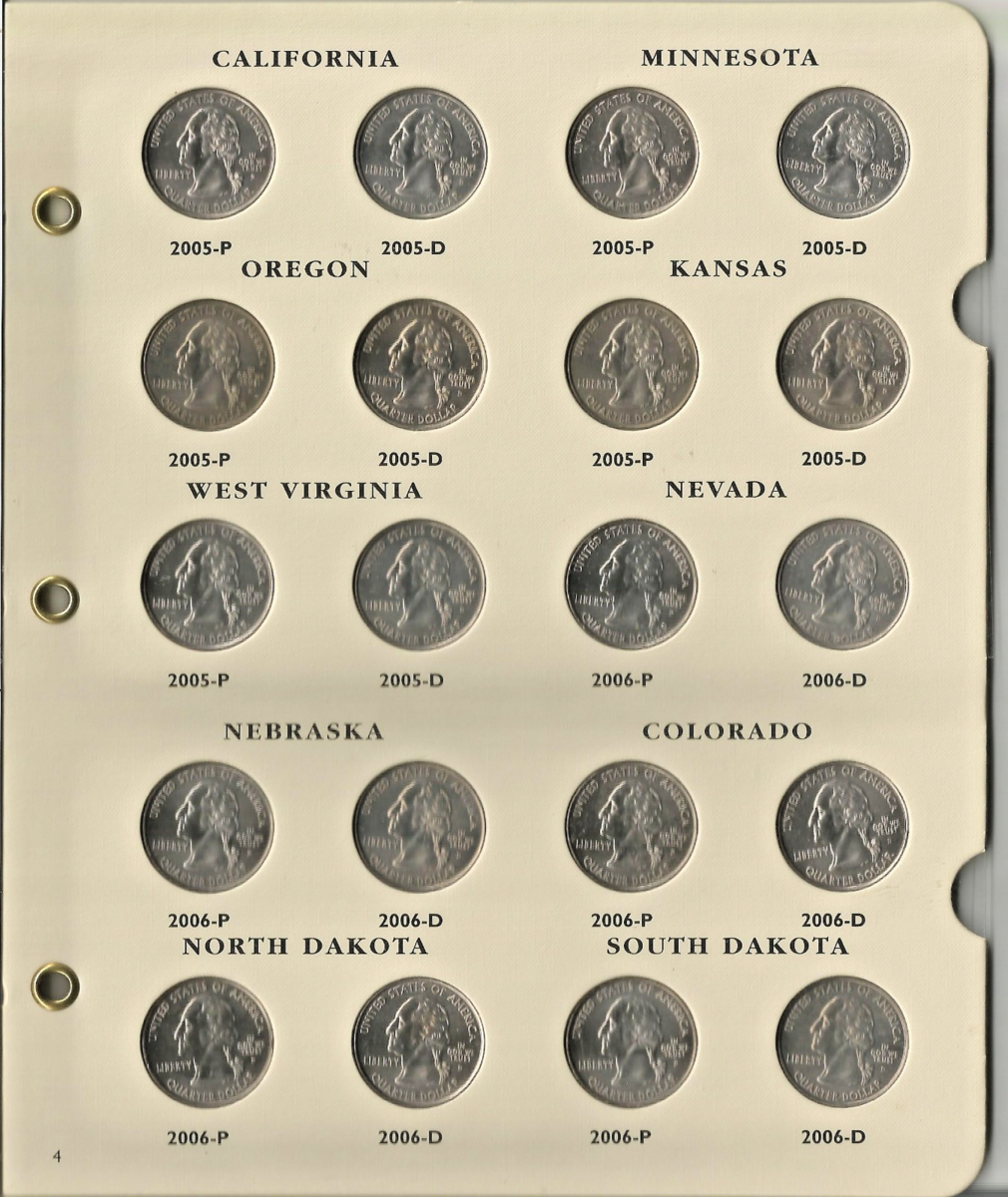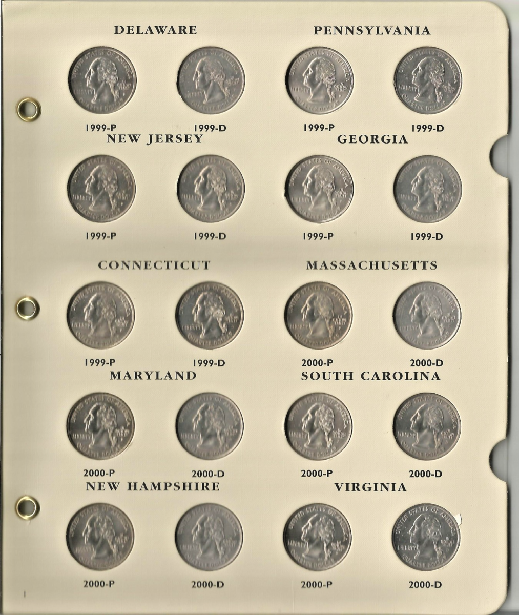 The 1999-2008 Littleton 50 States P/D Quarter Album LCA48T with 100 coins and slipcase is a comprehensive collection of US state quarters. Produced by the Littleton Coin Company in the United States, this album allows collectors to easily organize and display a complete set of 50 states quarters. The album comes with 100 coins and includes a convenient slipcase for safekeeping and easy portability, making it a valuable addition to any coin collector's assortment. All Coins are Uncirculated, Archival Quality Album.