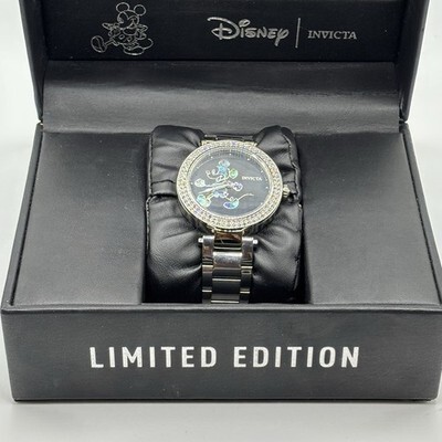Invicta Disney Limited Edition Mickey Mouse Ladies Crystal Watch Black Dial Rare