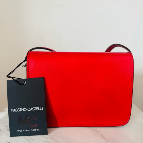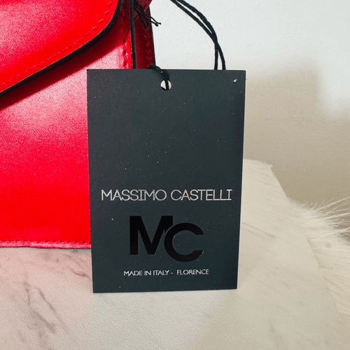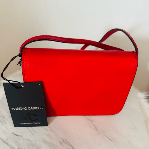 MASSIMO CASTELLO Tamonato Italian Leather Crossbody Bag Designer Luxury, Red NWT