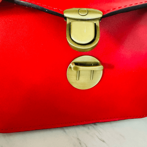 This classic leather crossbody bag features a stylish buckle closure and cute boxy design.