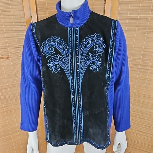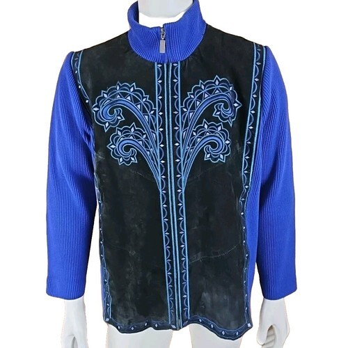 Vtg Bob Mackie Jacket Woman 2X Blue Suede and 49 similar items