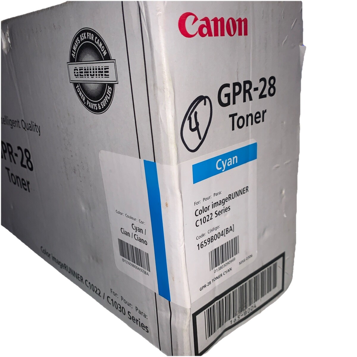 The product is a genuine Canon GPR-28 toner cartridge in cyan color, specifically designed for use with Canon C1022 and C1030 series printers. As an original Canon product, it ensures high quality and compatibility with the specified printer models. This unit quantity of 1 toner cartridge is ideal for those looking to replace their current cyan toner to maintain their printer's performance and achieve consistent, professional results in their printing needs.