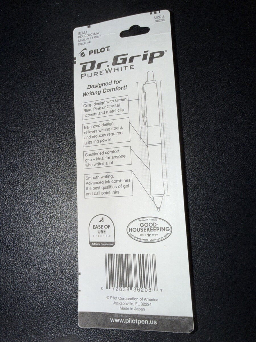 Pilot Dr Grip Pure White Blue Ballpoint Pen Black Ink Medium 1.0MM Comfort New