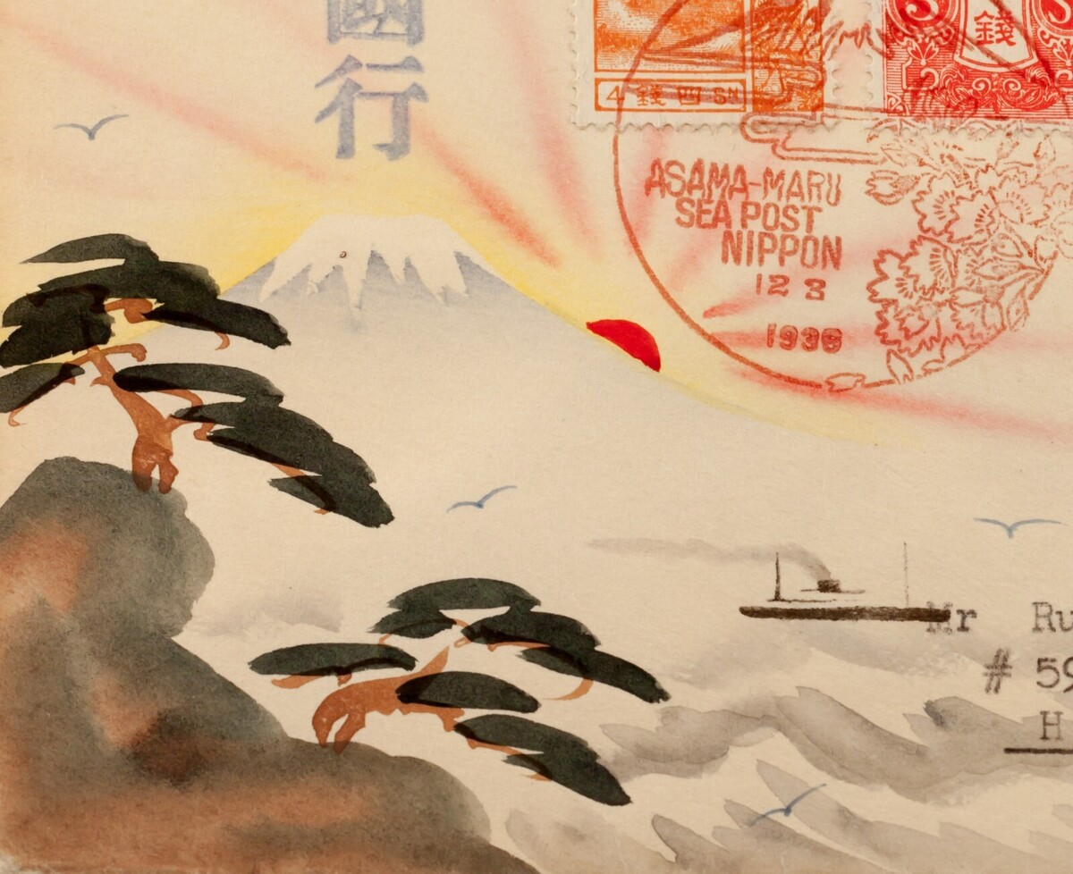 Karl Lewis 1936 Handgemalte Aquarellcover Japan Nach NY, USA FUJIYAMA C-9