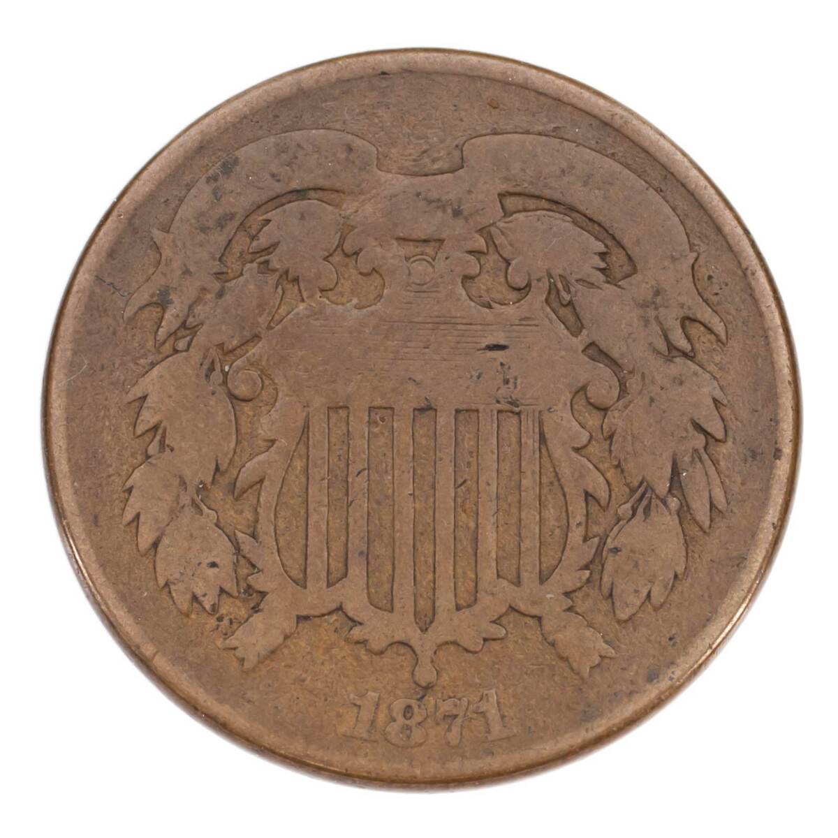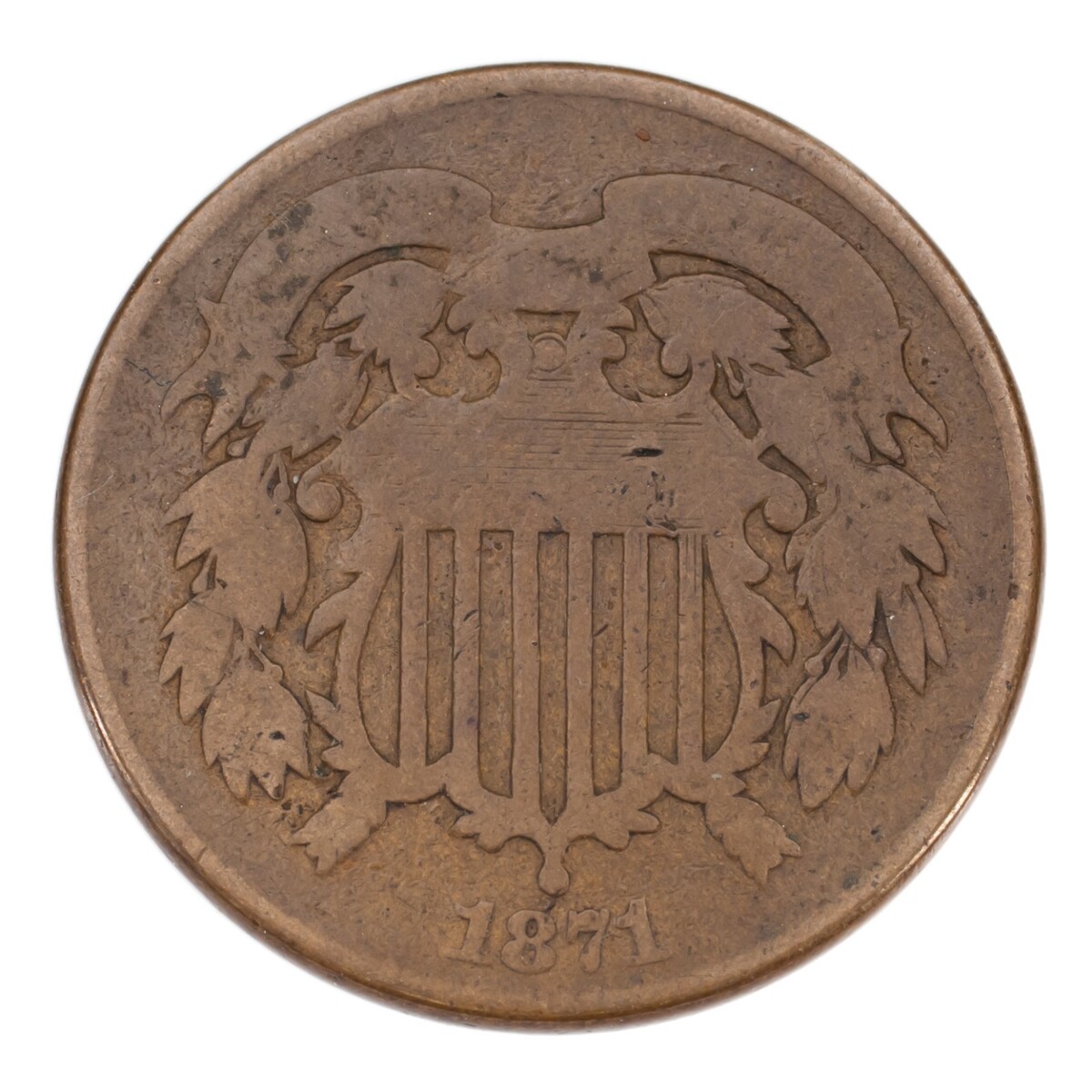 1871 ¡Pieza de dos centavos en buen estado, color marron, fecha completa de 4 dígitos!