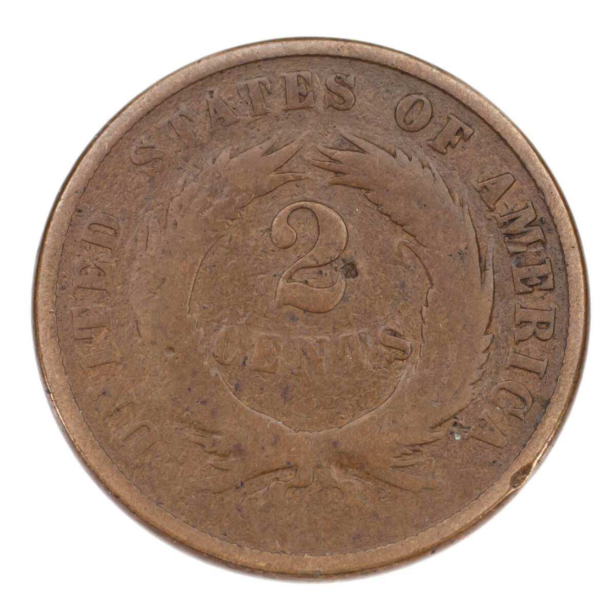 1869 Dos Centavo Pieza En Fino+ Estado, Todo Marron Color, Readable "Nosotros"
