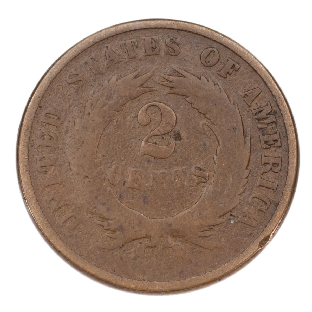 1871 Dos Centavo Pieza, Buen Estado, Todo Marron Color, Completo Rims