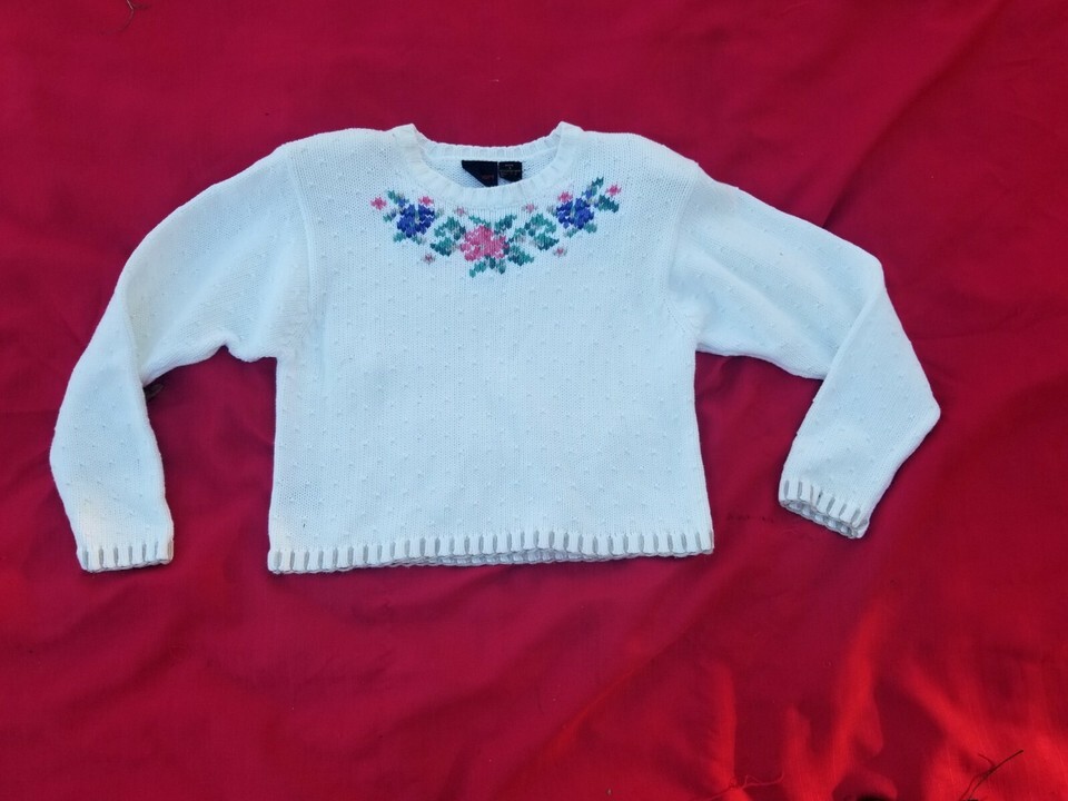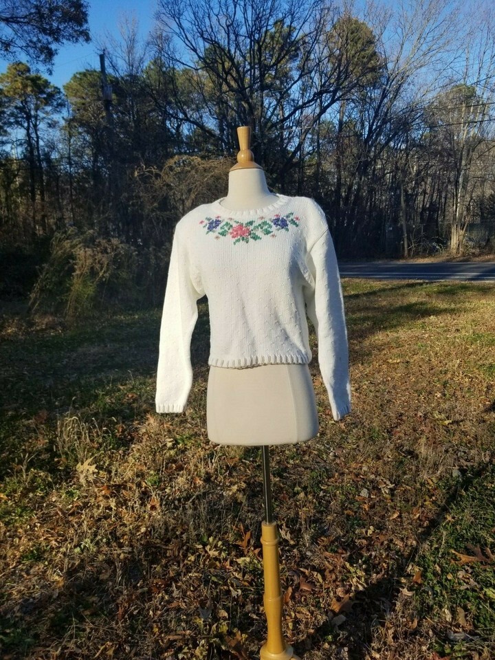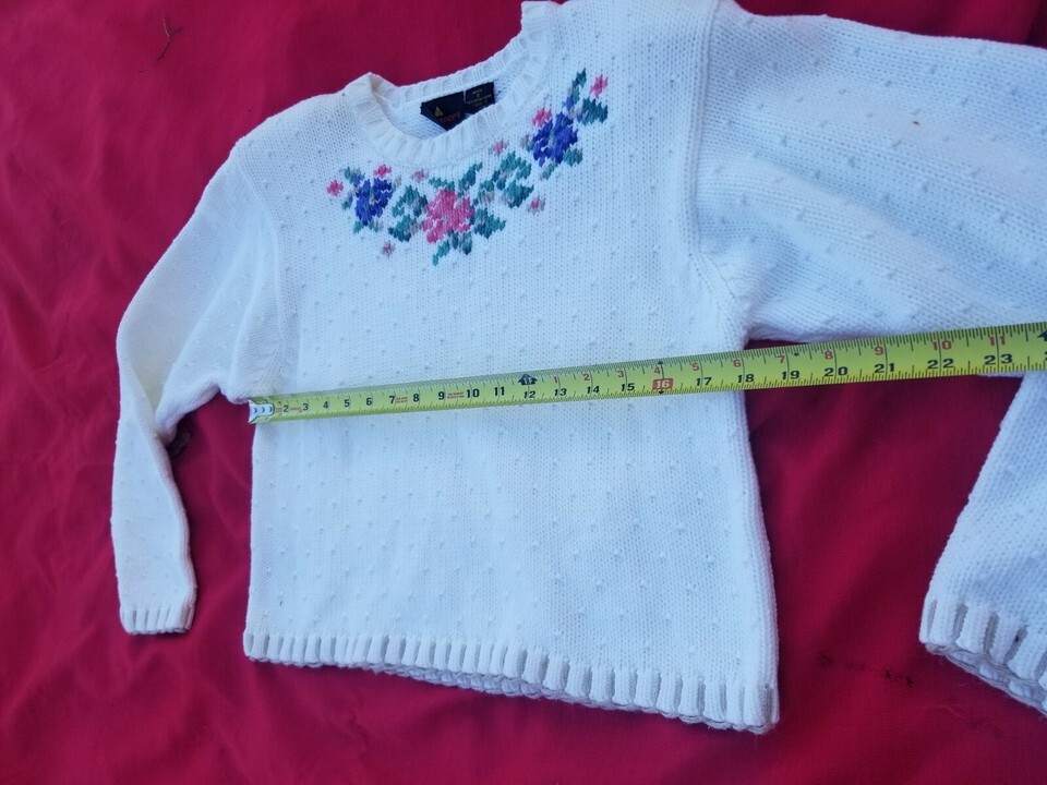 Vintage 90s Liz Sport cotton romantic Victorian floral pullover sweater sz PS