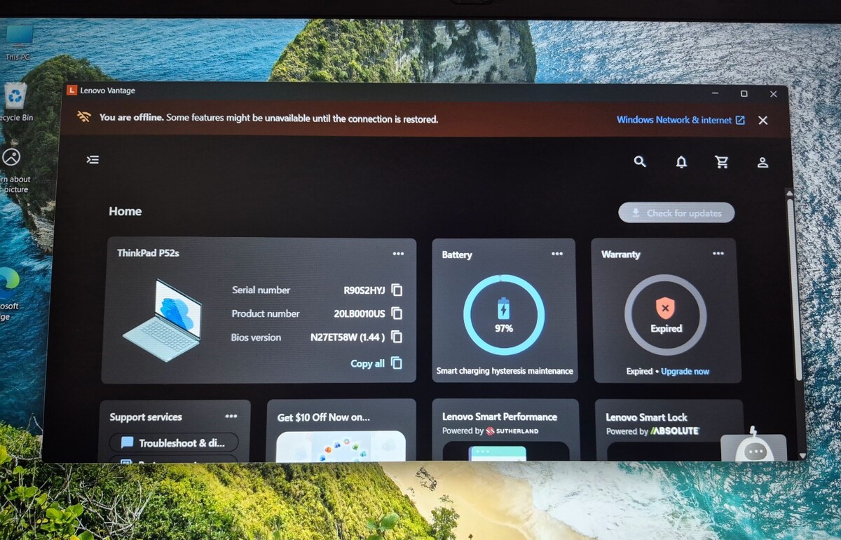 The Lenovo Vantage App is installed, was run and all Drivers, Firmware and Bios were updated.