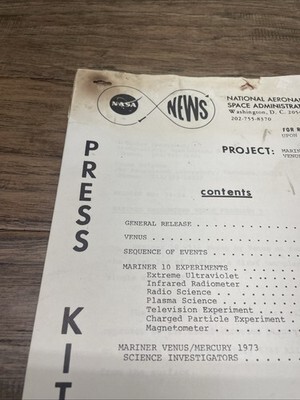 Vintage 1974 NASA News Press Kit Mariner and similar items