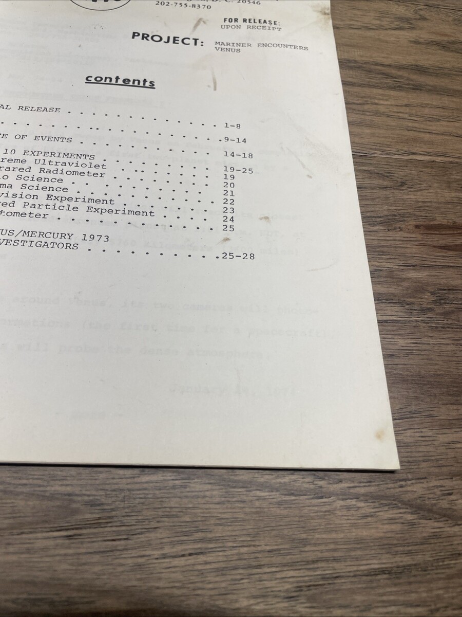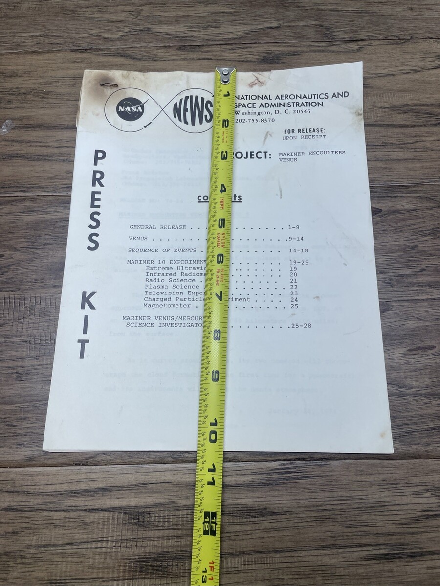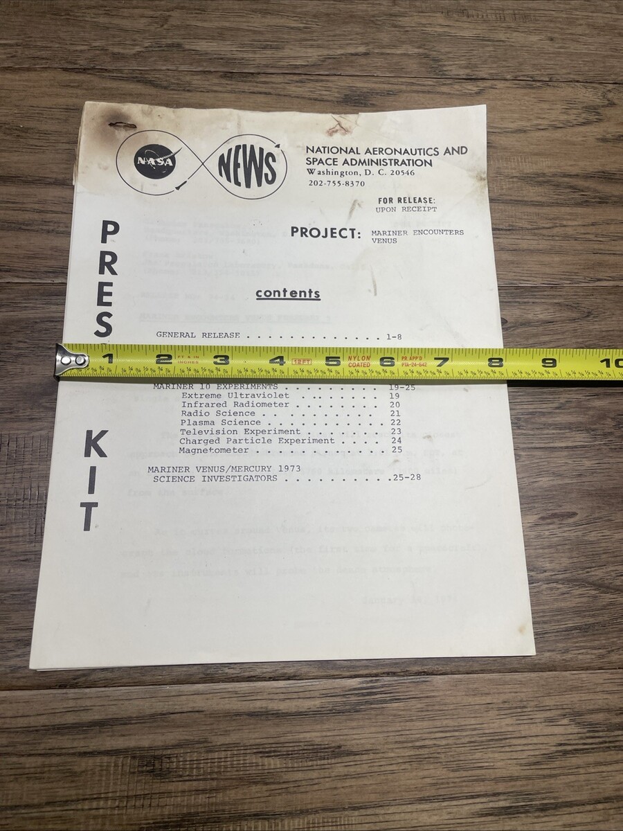 Vintage 1974 NASA News Press Kit Mariner Encounters Venus Space Travel KG