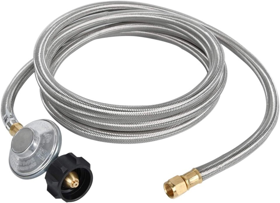 12FT Stainless Braided Propane Regulator with Hose,Universal Grill Regulator Rep