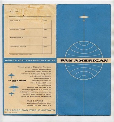 A Pan American World Airway System ticket jacket . Has Travel Documents Required checklist. Circa 1950's