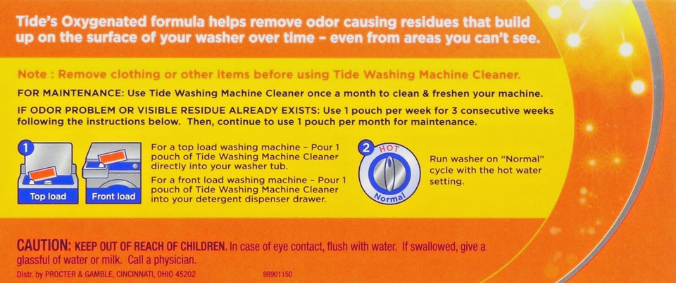 Tide WASHING MACHINE Washer CLEANER 3 pouch dEEp Clean Remove Odor he & standard