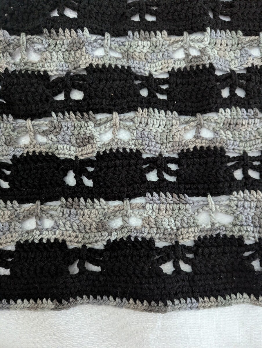 Hand Crocheted Butterfly Pattern Shawl Black and Gray Variegated