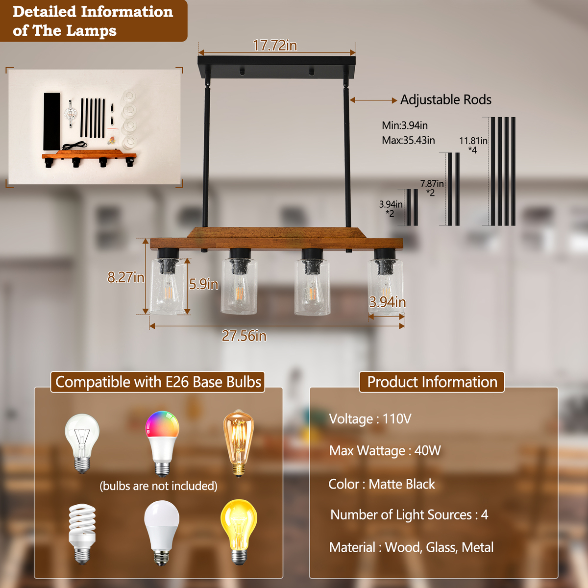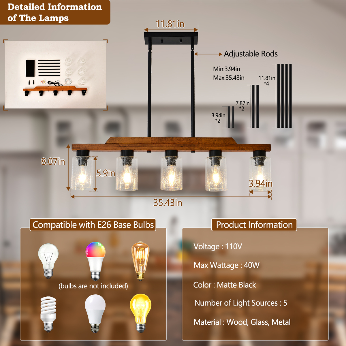 We understand that a one-size-fits-all approach fails in lighting design. That's why this Wood Kitchen Island Chandelier is available in a variety of sizes.