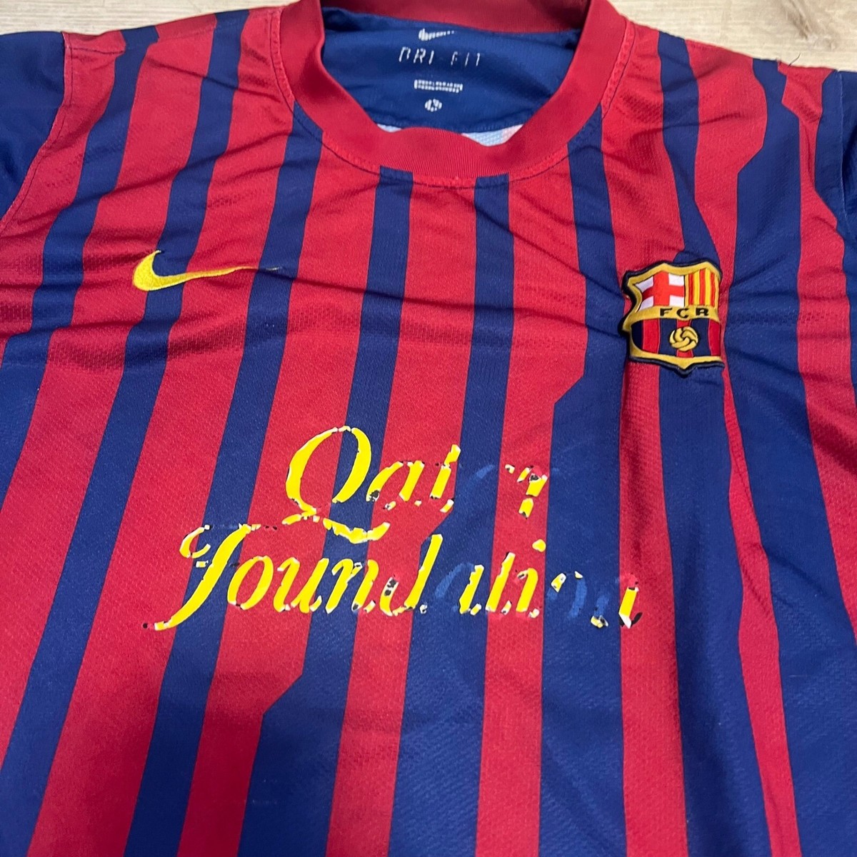 Nike FC Barcelona Soccer Jersey Qatar Foundation Dri-FIT Authentic Mens Sz L