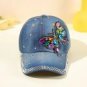 Women's graphic cap butterfly design adjustable back blue, ships right out
