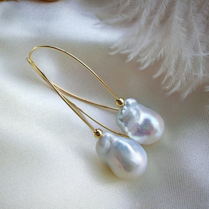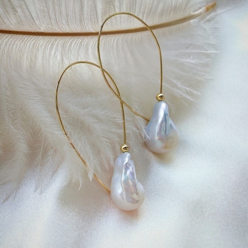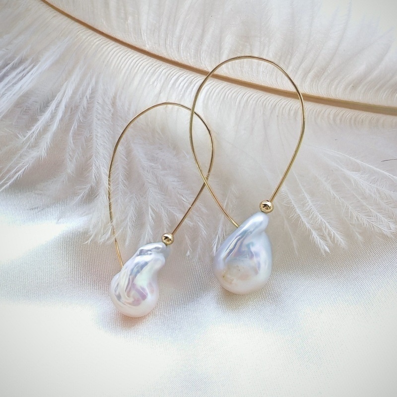 Handmade Natural Baroque Pearl Threader Earrings – Original Minimalist Design