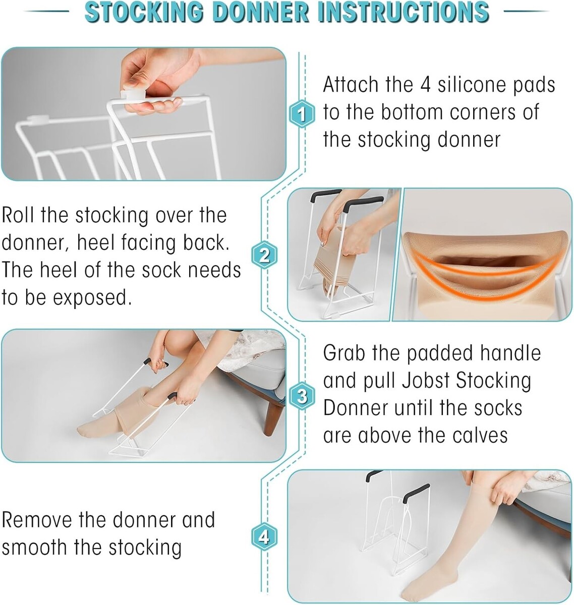 This is more than just a tool; it?s a gateway to independence and ease. Reduce the daily struggle of putting on compression stockings and embrace the simplicity of dressing. Designed with care, our sock aid offers durability, comfort, and a perfect fit, ensuring that you never have to rely on assistance again. Don?t let mobility challenges dictate your day?order your Effortless Sock Application Tool today!
