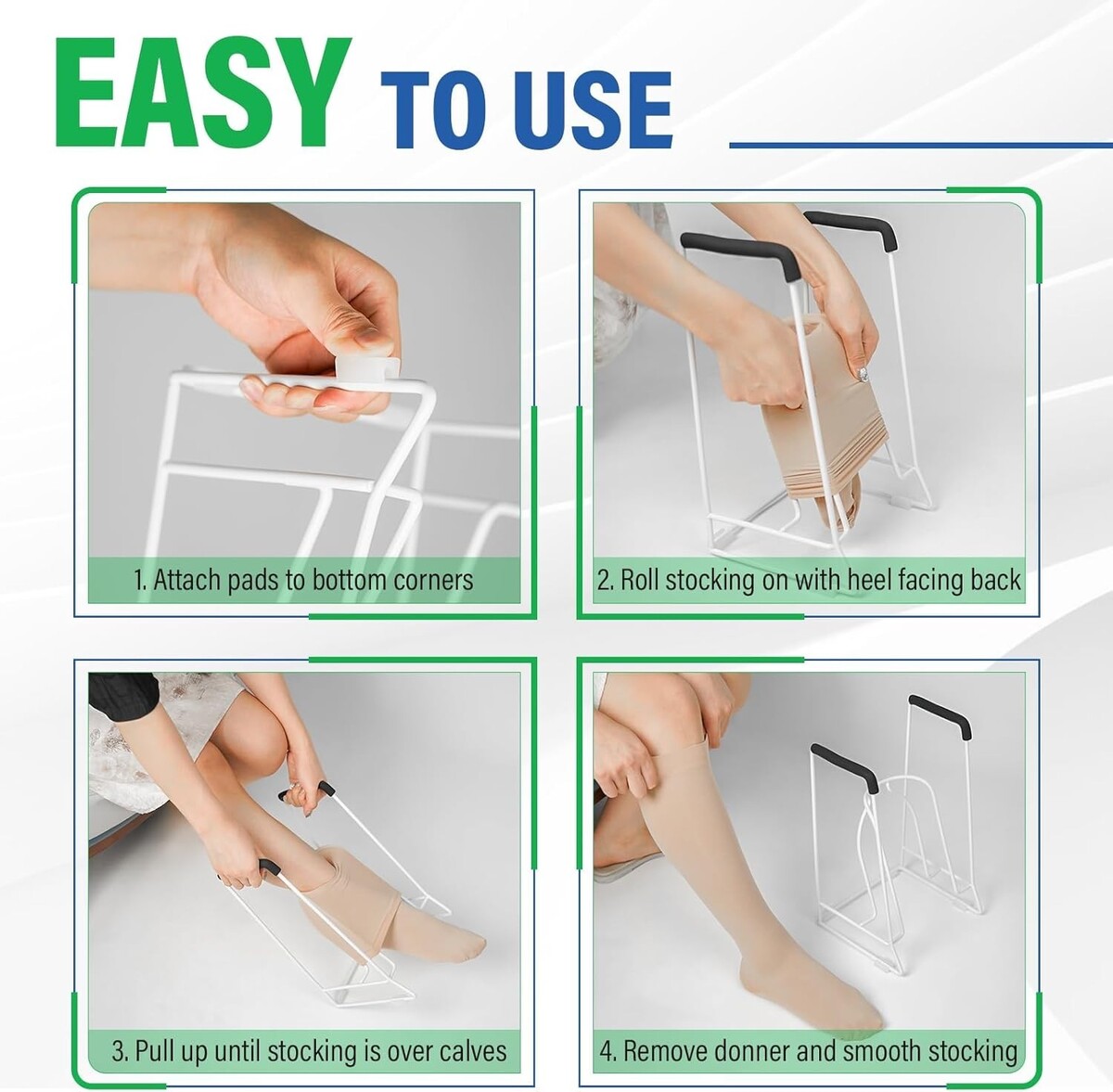 Upgraded Curved Frame: A smooth, tilted frame that reduces friction, guiding compression socks into the perfect position with minimal effort.