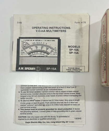 VTG A.W. SPERRY SP-10A Multimeter AC/DC Multitester Box Wires Instructions WORKS