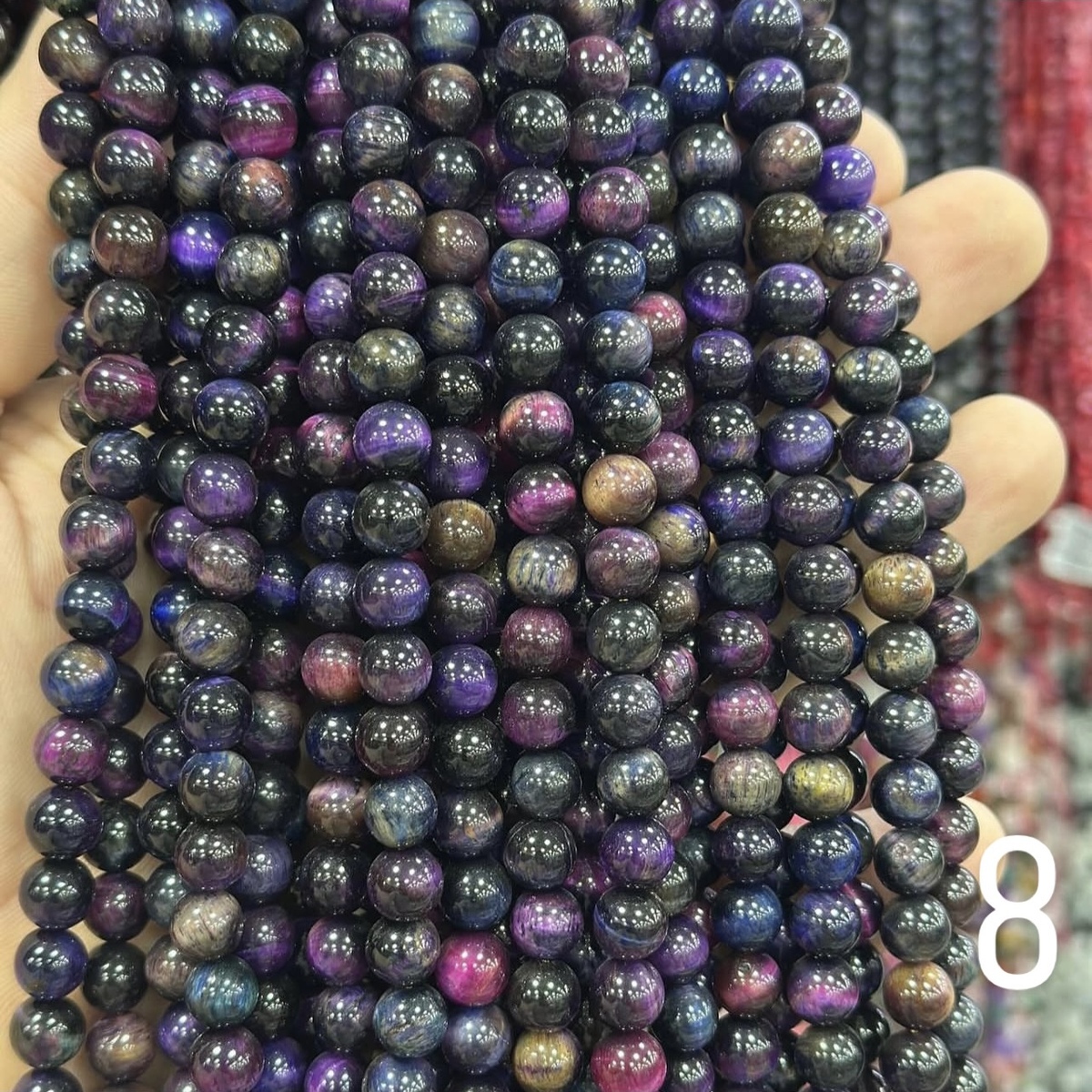 Enhance your jewelry designs with our high-quality natural Tiger's Eye strands. With 10 unique color varieties featuring incredible chatoyancy, these 8 mm round beads are perfect for necklaces, bracelets, and artisan crafts.