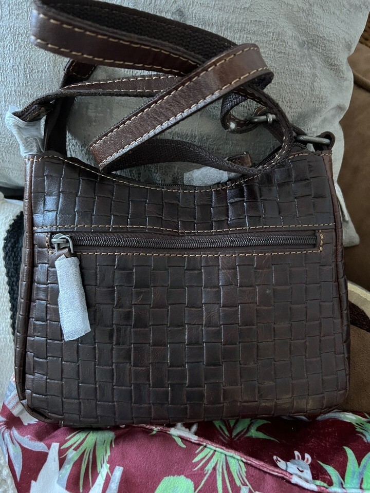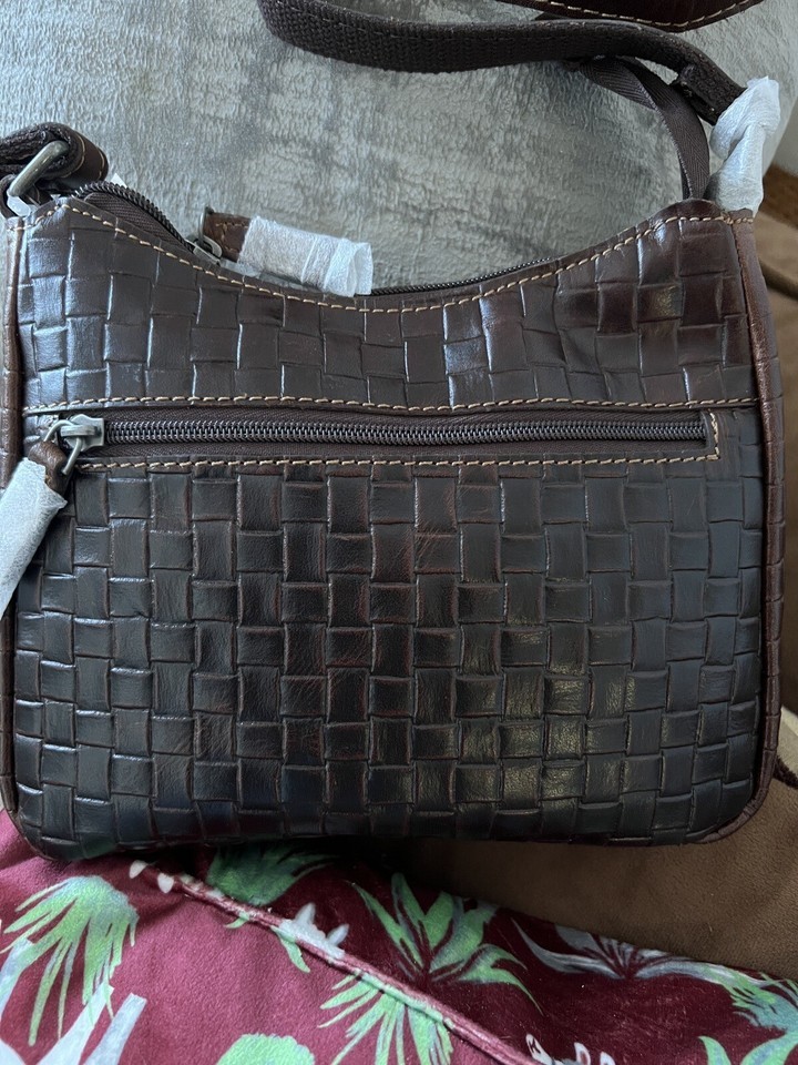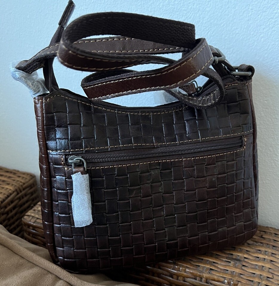 JACK GEORGES Hand -Stained Buffalo Leather With Woven Emboss Crossbody Bag