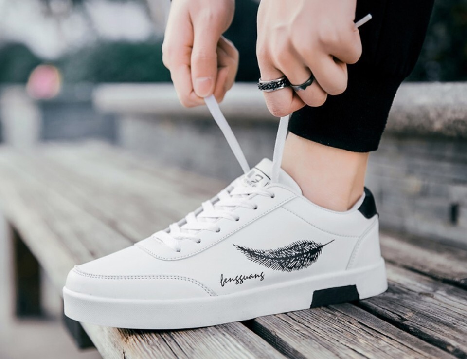 Zapatos Casuales Blancos Zapatillas De Cuero Moda Deportivos Cómodas Para Hombre