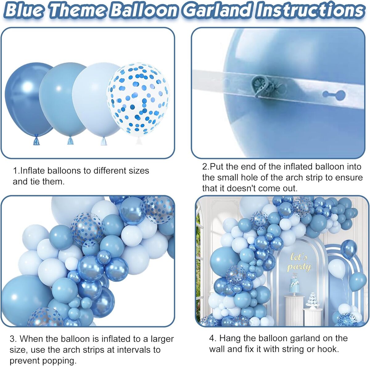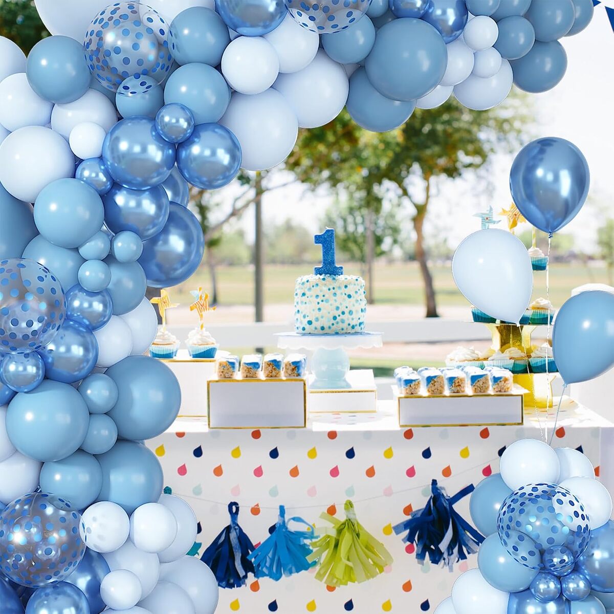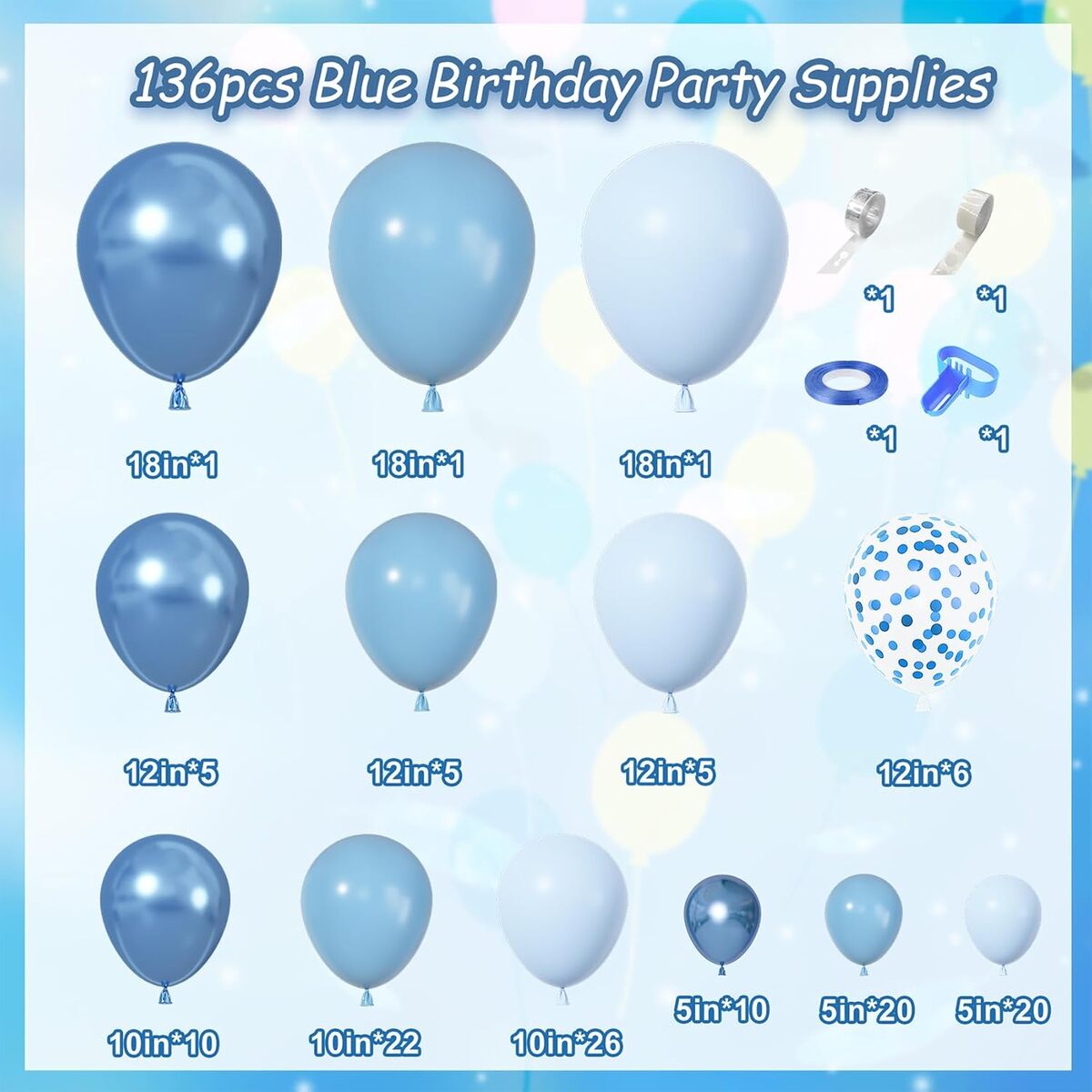 136pcs Blue Balloon Arch Kit Metallic Macaron Confetti Party Decor