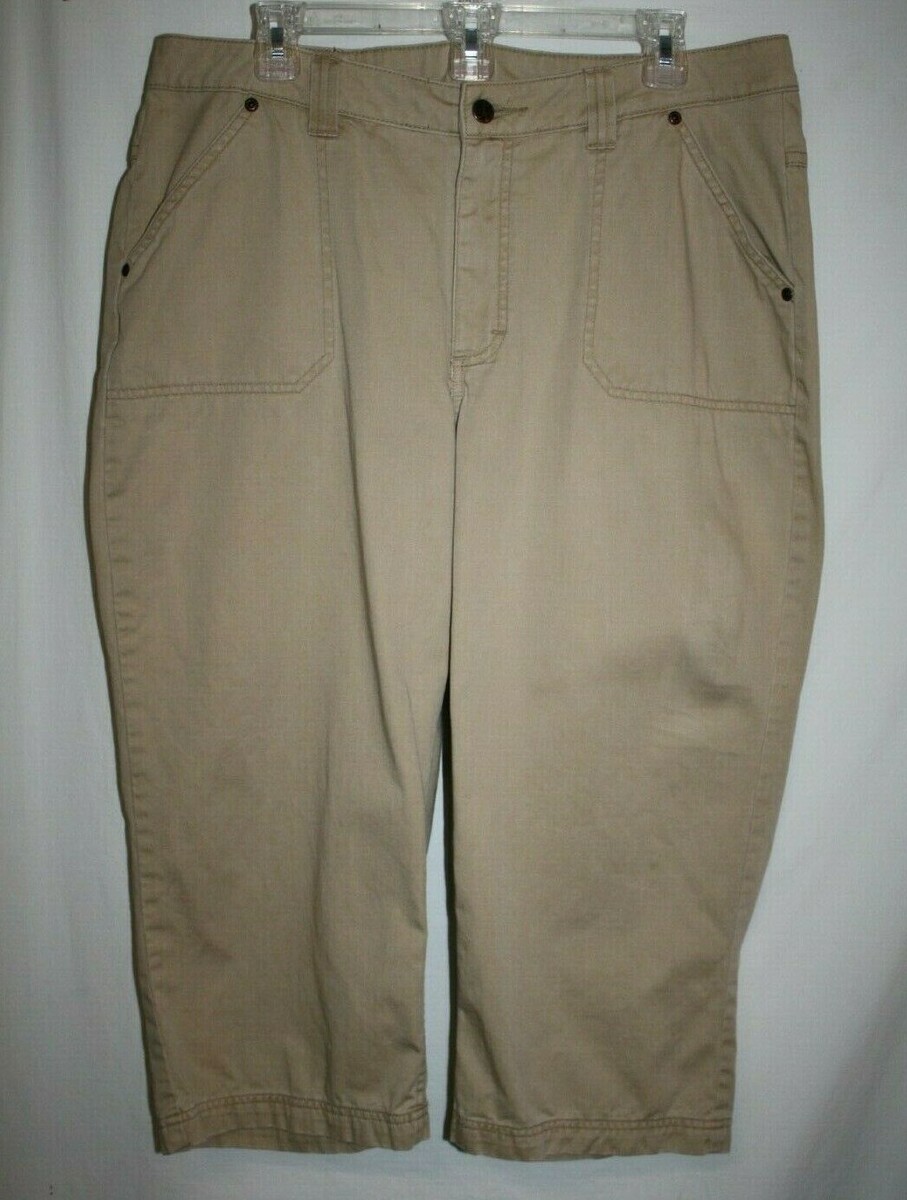 Riders Misses 16 M Beige Khaki Tan Capri Pants Short Cropped Cotton Flap Pocket
