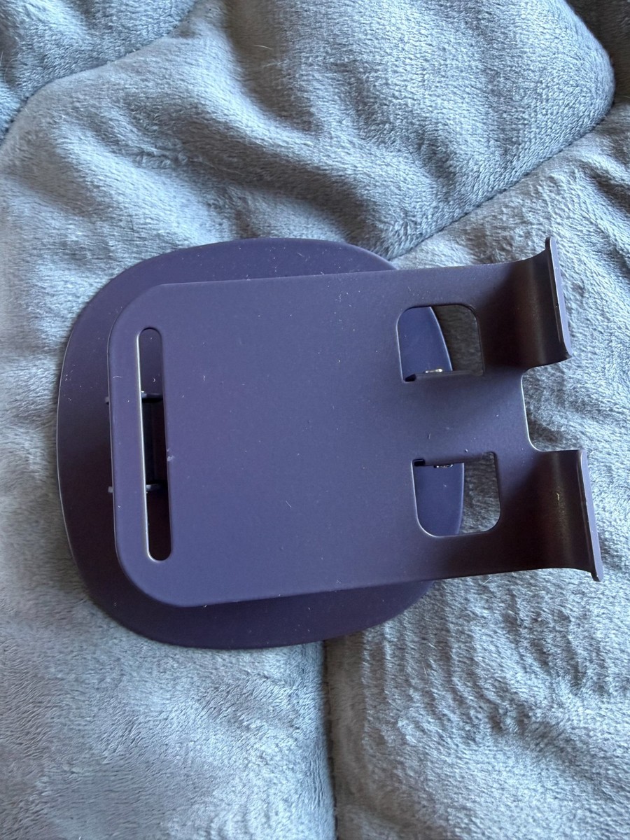Sturdy, foldable desktop stand designed for phones and tablets. Built from metal with a weighted base for stability and silicone contact points to prevent slipping or scratching.