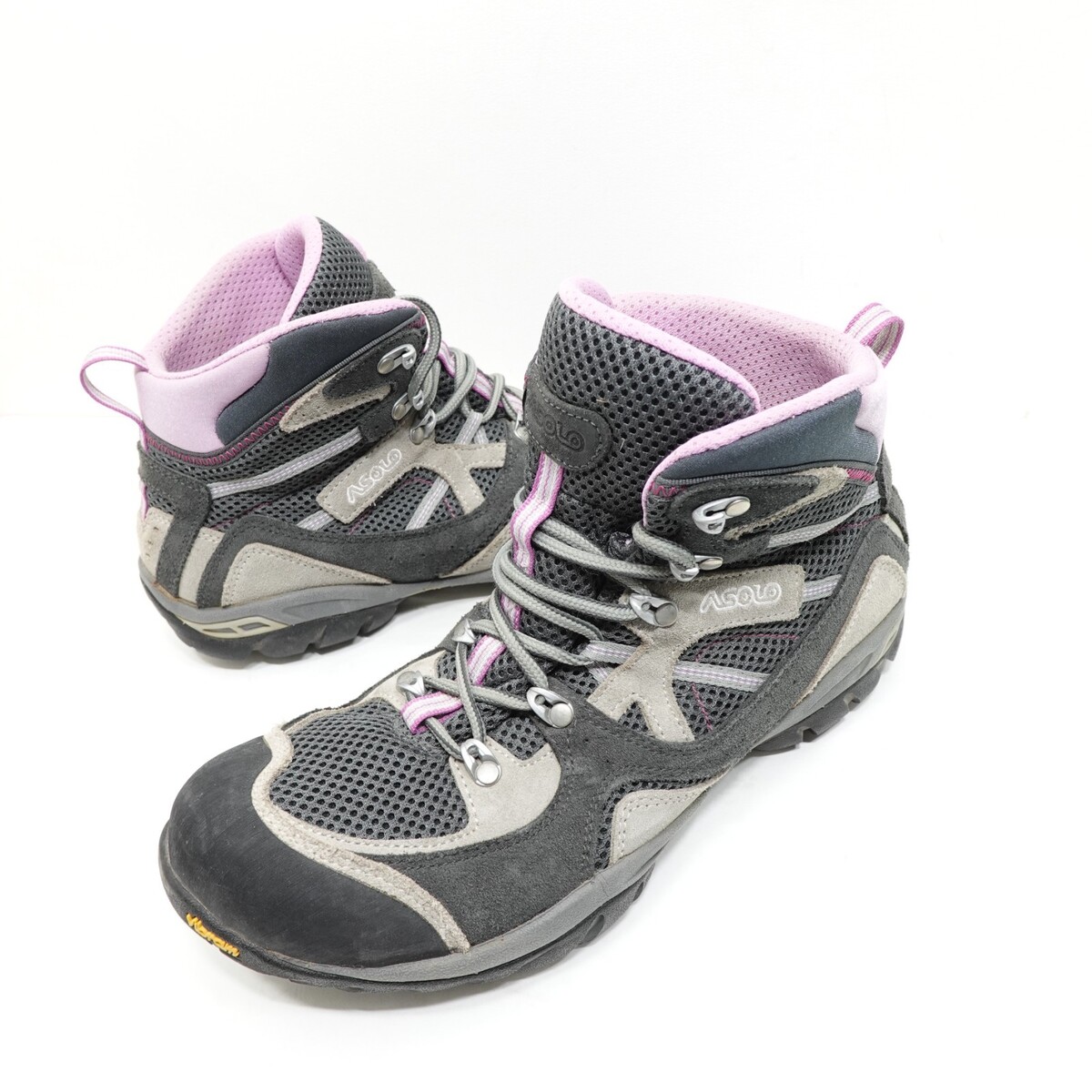 Asolo Womens Hiking Boots Mid Ankle Vibram Sole Gray Pink Trail Shoes Size 10