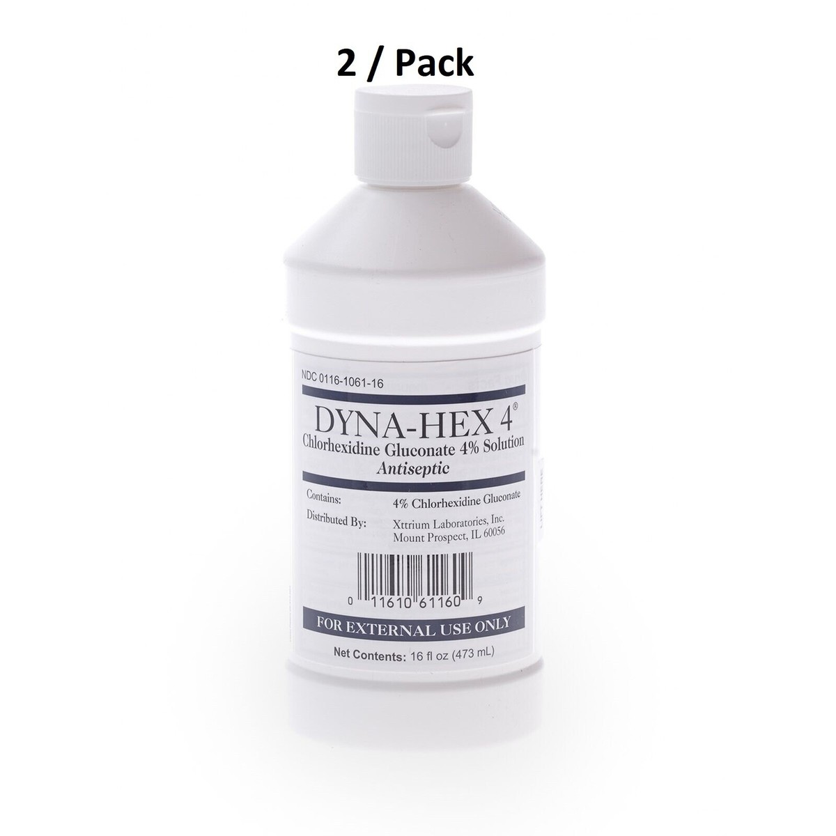 2 Pk Dyna-Hex 4 Antiseptic Skin Cleanser Liquid Dyna Hex CHG Surgical Scrub 16oz