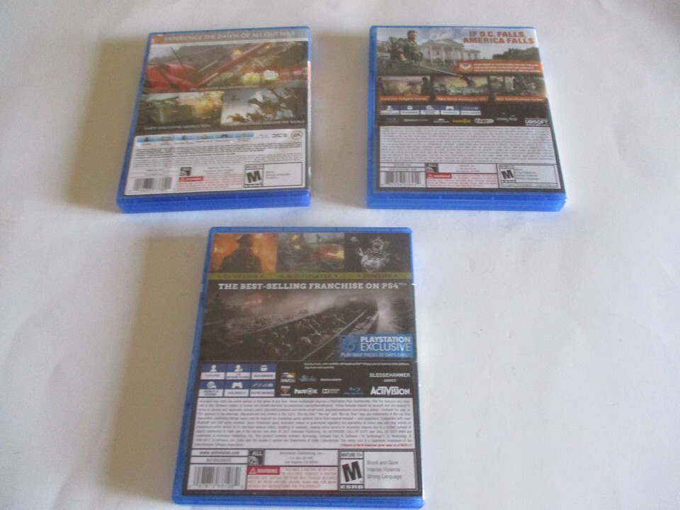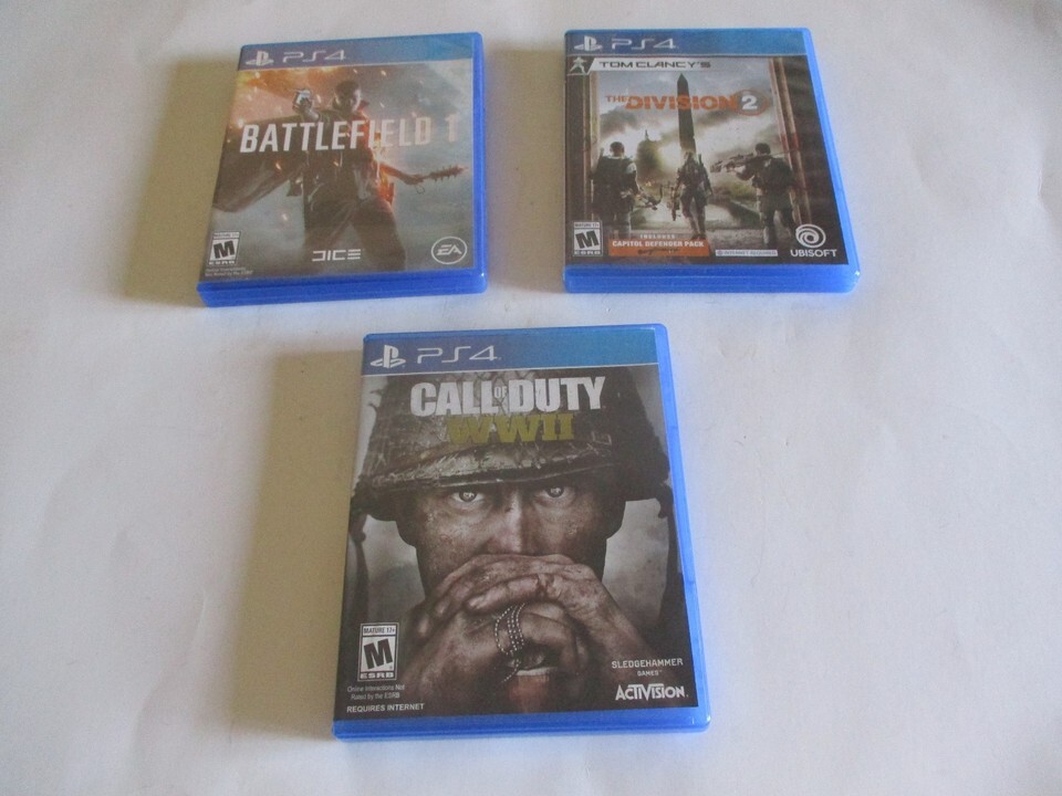3 PS4 GAMES CALL OF DUTY THE DIVISION 2 BATTLEFIELD 1 COMPLETE W/CASE & INSERTS