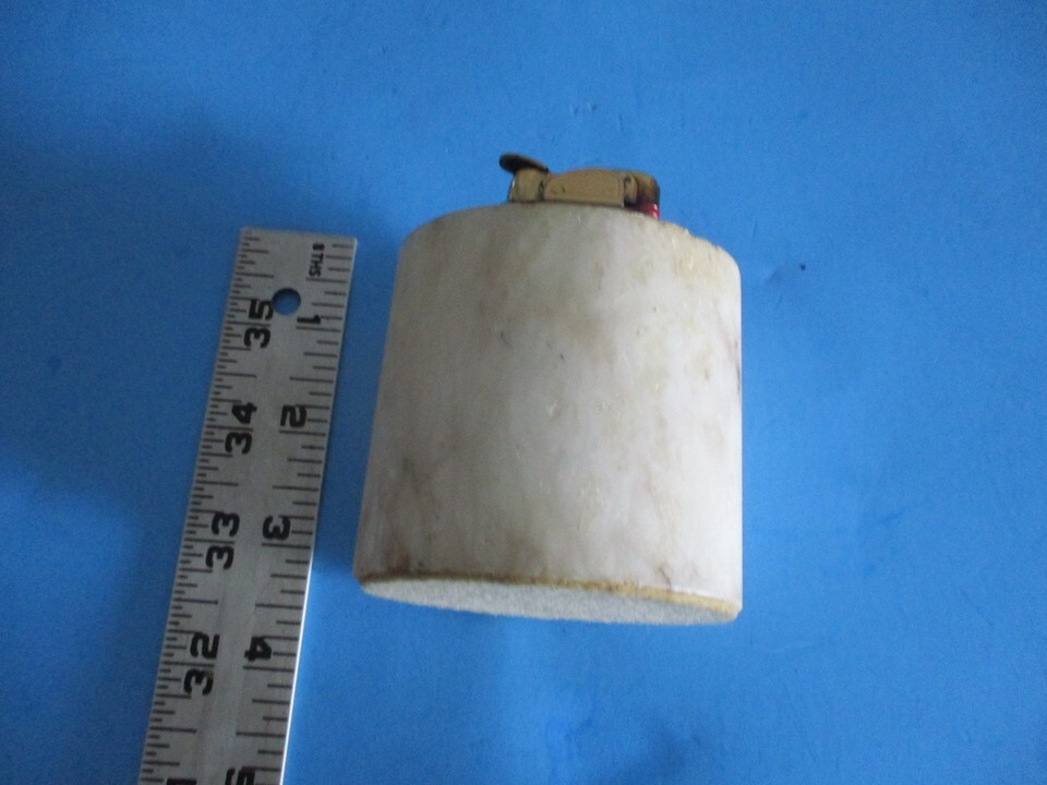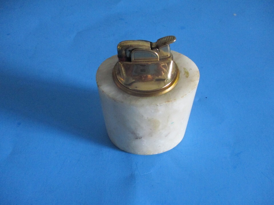 VTG. EVANS FUEL LIGHTER BRASS COLOR TOP SOAPSTONE BOTTOM WHITE/GRAY UNTESTED GUC