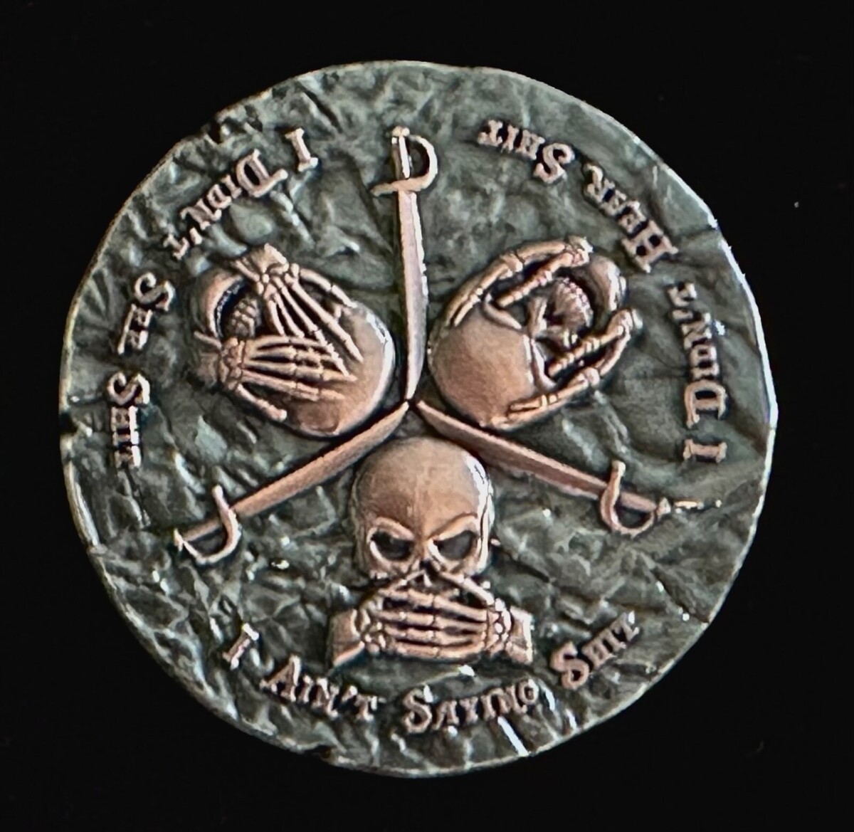 “Loose Lips Sink Ships” Pirate Challenge Coin, 1.75”, Two Tone EDC