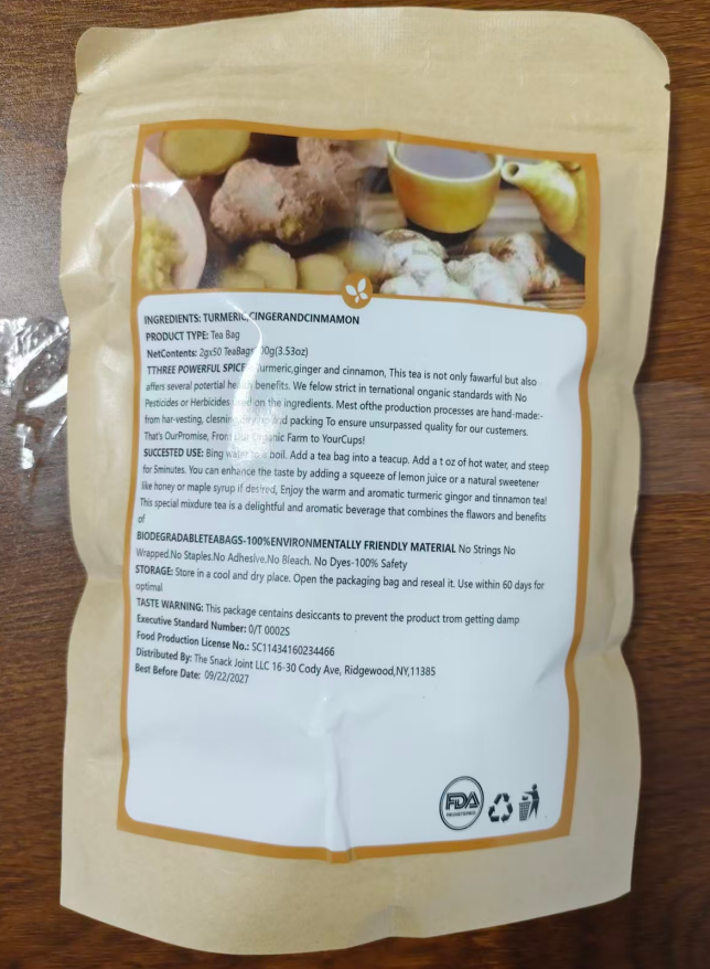 Caffeine-free, sugar-free turmeric ginger cinnamon tea bags. Natural soothing herbal supplement for daily wellness.